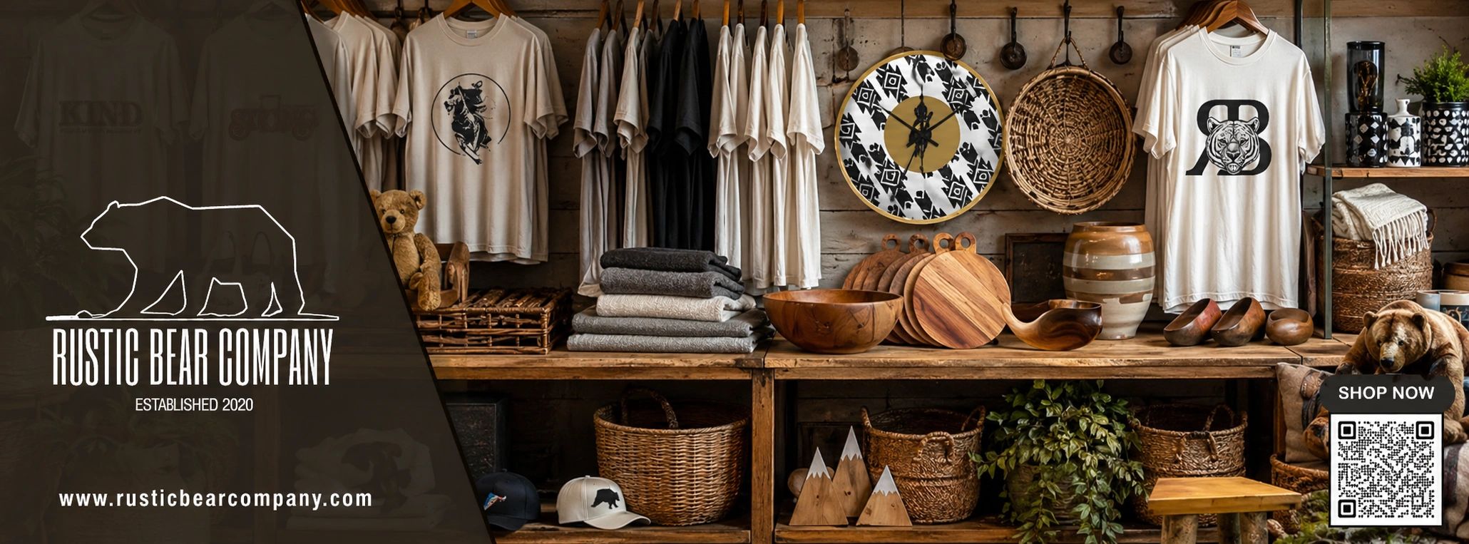 Handcrafted wood decor, cozy home style, apparel, and bold Bear Brew coffee designed for your next adventure.